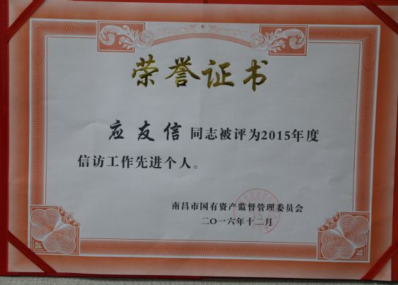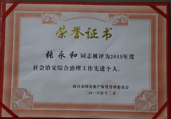 2016年12月,市二建公司榮獲市國資委頒發(fā)的兩項榮譽——綜治工作先進單位、信訪工作先進單位。分管該項工作的領(lǐng)導(dǎo)、成員等三人同時被授予先進個人,成績的取得原自于市國資委的正確領(lǐng)導(dǎo),更離不開單位和工作人員的辛勤努力。