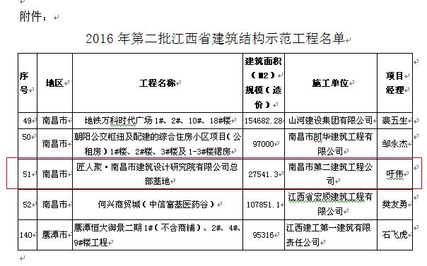 公司匠人聚?南昌市建筑設(shè)計(jì)研究院有限公司總部基地工地榮獲2016年第二批江西省建筑結(jié)構(gòu)示范工程稱號(hào)