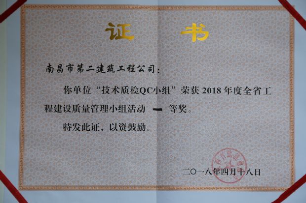 【概要描述】 昨日,在全省QC成果發(fā)布會上,公司技術質檢QC小組榮獲2018年度全省工程建設質量管理小組活動一等獎。